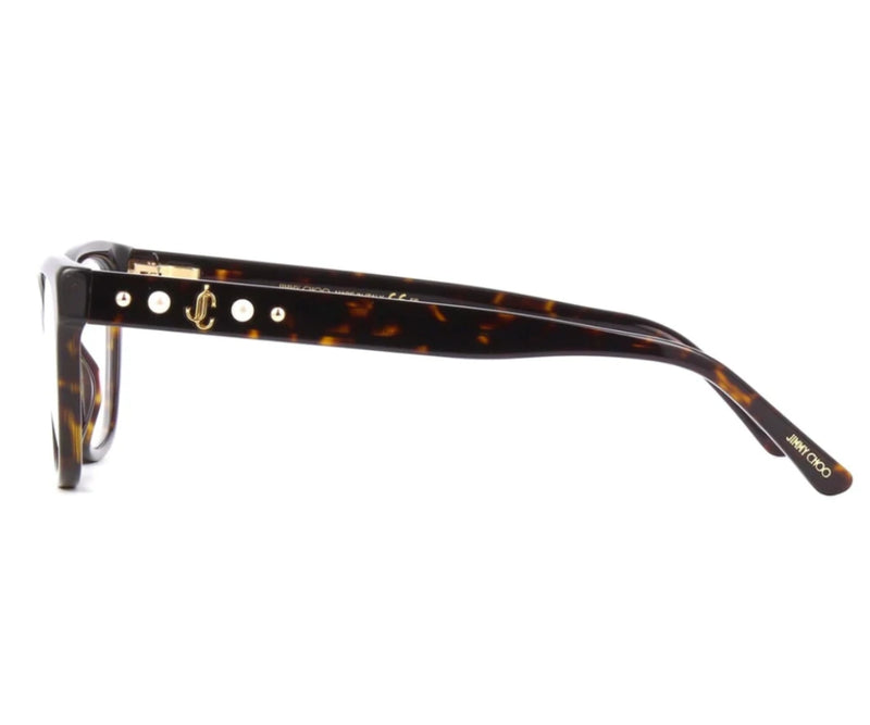 The Jimmy Choo 334 086 optical frame exudes timeless elegance with a touch of modern sophistication. Designed in a classic cat-eye shape, the rich Havana brown acetate frame enhances any look with its warm, luxurious appeal. Perfect for those who appreciate refined style, this frame offers a lightweight yet durable construction for all-day comfort. The clear lenses can be customized to your prescription, making it a seamless blend of fashion and functionality. Whether for work, casual outings, or special occasions, the Jimmy Choo 334 frame adds a chic and polished finish to your eyewear collection. With its graceful silhouette and premium craftsmanship, this frame is a must-have for those who love classic charm with a contemporary twist.