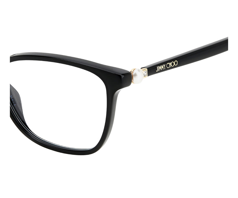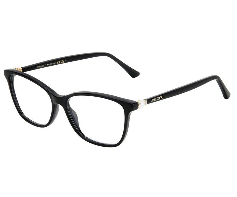 The Jimmy Choo 377 807 optical frame blends timeless sophistication with a bold, feminine silhouette. Crafted from high-quality black acetate, the classic cat-eye shape adds a touch of vintage charm while offering a modern, polished look. Perfect for everyday elegance, this frame is both stylish and comfortable, with a lightweight yet durable build that ensures all-day wearability. The clear lenses allow for prescription customization, making the frame as functional as it is fashionable. Whether you're at the office or out on the town, the Jimmy Choo 377 frame enhances your style with effortless grace. It's the ideal choice for those who appreciate classic design, luxury craftsmanship, and a hint of glamour in their eyewear.