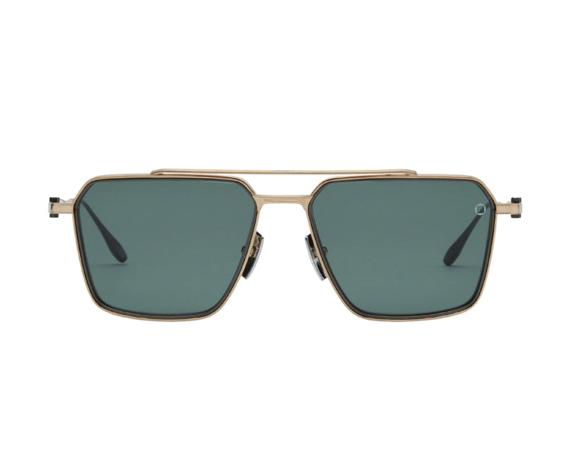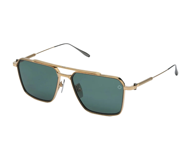 The AKONI TELESTO AKS 523A sunglasses redefine luxury with an exclusive and refined design. Crafted from premium Japanese titanium, the frame features an elegant blend of brushed 12k gold and matte black palladium, offering both strength and sophistication. The bold navigator shape is paired with deep emerald green solid lenses that provide UV protection, ensuring both style and eye safety. With meticulous detailing and a distinctive color palette, the TELESTO stands out as a symbol of modern elegance and precision craftsmanship. Designed for those who appreciate exclusivity and refined aesthetics, these sunglasses deliver a timeless yet contemporary look that sets a new standard in high-end eyewear.