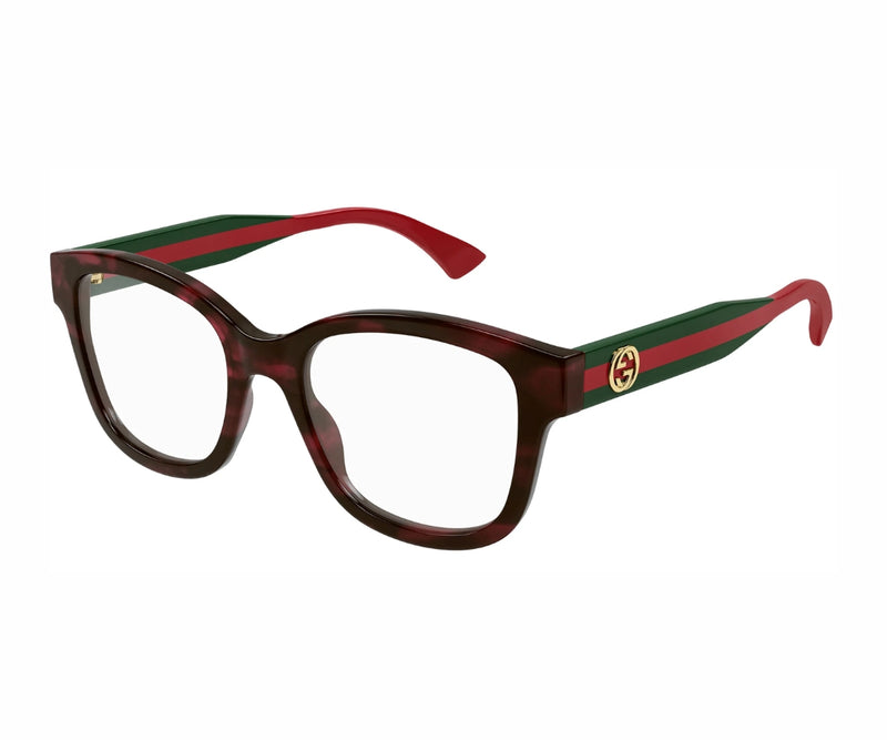The Gucci 1863O 003 optical frame features a sophisticated square design in a rich burgundy havana finish, blending classic style with a modern flair. Crafted from premium acetate, this frame offers durability, comfort, and a refined aesthetic perfect for everyday wear. The clear lenses maintain a sleek and professional appearance, making it a versatile choice for any occasion. With its warm tones and timeless silhouette, this model embodies Gucci’s signature elegance and attention to detail. Ideal for those who appreciate subtle luxury and classic design, the frame adds depth and character to any personal style.
