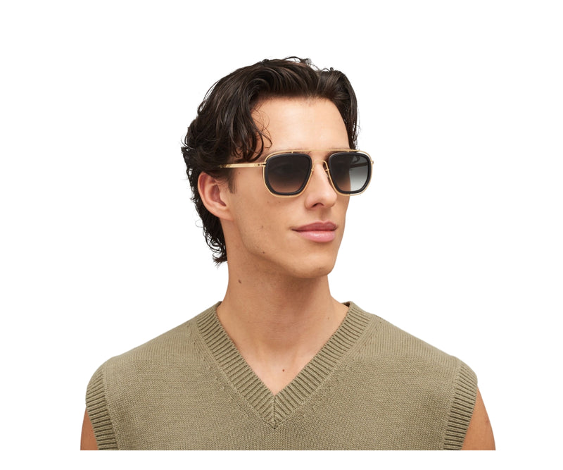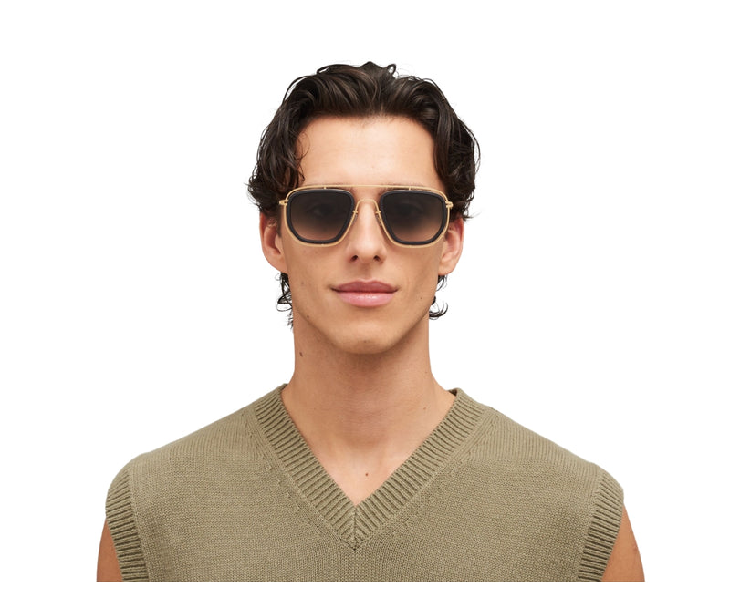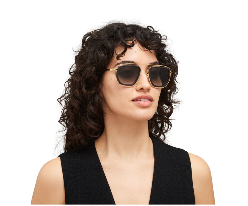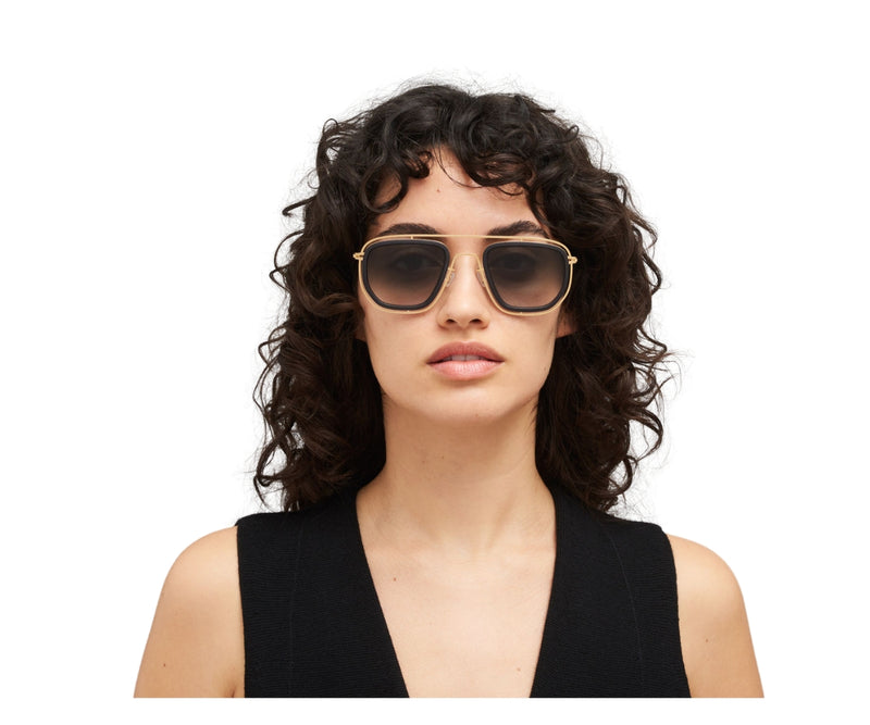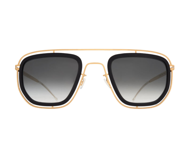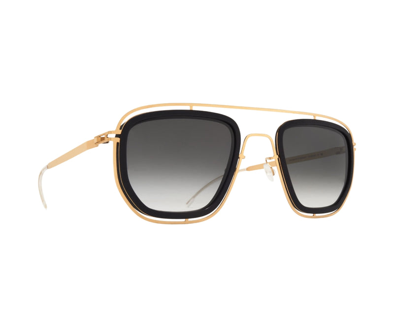 MYKITA FERLO C351 sunglasses showcase a refined fusion of contemporary design and classic aesthetics. Crafted from a combination of lightweight stainless steel and premium acetate, the frame comes in an elegant pitch black and glossy gold color combination. The rectangular shape offers a timeless silhouette, suitable for a wide range of face shapes. The black gradient lenses provide subtle shading and ensure visual comfort while offering essential UV protection. Designed for those who appreciate minimal yet distinctive eyewear, this model effortlessly blends modern sophistication with everyday functionality. The gradient lens type adds a stylish touch, making these sunglasses a versatile choice for both casual and formal settings. Ideal for anyone seeking a balance of innovation and timeless elegance.