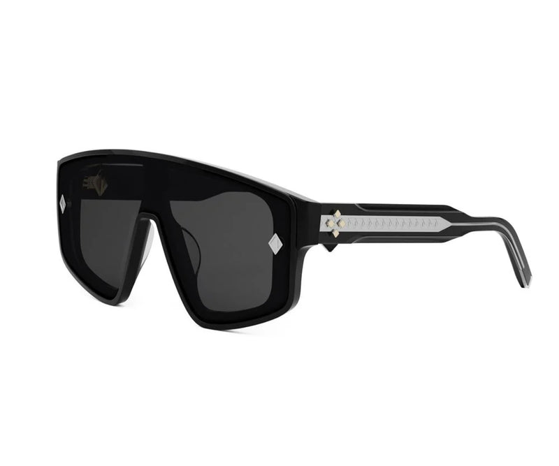CHRISTIAN DIOR CD DIAMOND M1U 40134U-L 10A0 sunglasses redefine bold elegance with their oversized wraparound design. Crafted from premium black acetate, the frame offers a sleek and modern aesthetic that exudes confidence. The solid grey lenses provide essential UV protection while enhancing the sophisticated appeal of these statement sunglasses. Designed for those who appreciate avant-garde fashion, the wraparound shape ensures a striking presence and a futuristic edge. Combining luxury with functionality, these Dior sunglasses are the perfect accessory for a high-fashion look, effortlessly elevating any outfit with their distinctive and powerful silhouette.