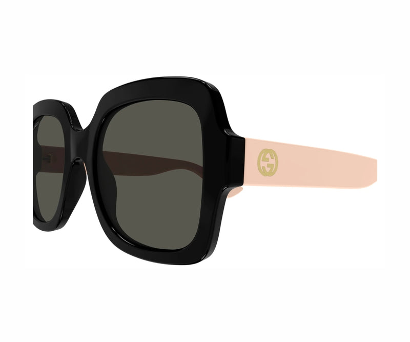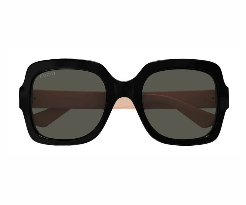 The Gucci 1337S 008 sunglasses offer a refined and timeless look with a modern edge. Designed in a classic square shape, the frame comes in a sleek shiny black acetate that adds sophistication to any outfit. Paired with solid grey lenses, these sunglasses provide reliable UV protection while maintaining a versatile, understated aesthetic. Perfect for both casual and formal occasions, the Gucci 1337S 008 seamlessly blends high fashion with everyday functionality. Crafted with premium materials and iconic Gucci craftsmanship, this style is a go-to accessory for those who value elegance, comfort, and quality. A true statement of classic luxury with contemporary appeal.