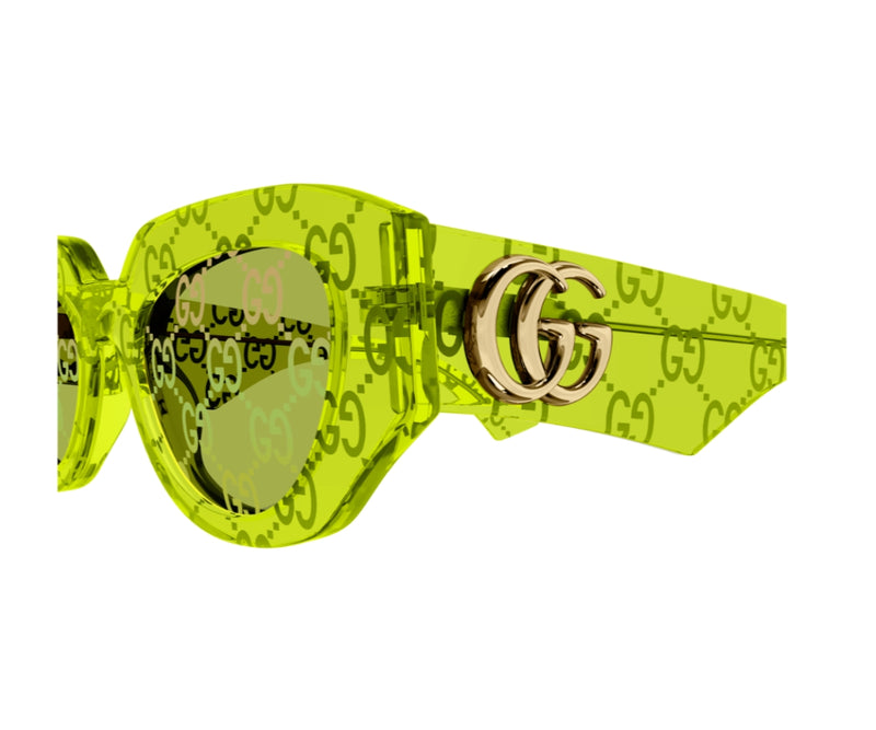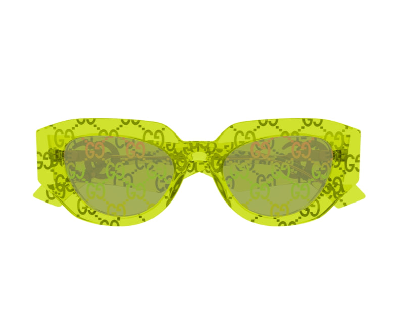 Introducing the GUCCI 1421S 007 sunglasses – a bold statement in luxury eyewear. Featuring a striking neon green acetate frame adorned with the iconic Gucci monogram, this classic cat-eye design blends retro flair with modern elegance. The solid green lenses offer UV protection, ensuring both style and safety. Crafted from high-quality acetate, these sunglasses are lightweight yet durable, making them perfect for everyday wear. The signature gold double-G logo on the temples adds a distinctive touch of sophistication. Designed for those who dare to stand out, the GUCCI 1421S 007 combines iconic branding with timeless style in a fresh, vibrant colorway. Perfect for fashion-forward individuals seeking both glamour and functionality.