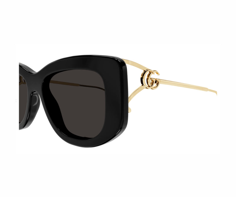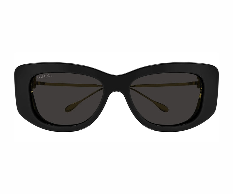Add a touch of timeless elegance to your look with the GUCCI 1566SA 001 sunglasses. Designed in a chic cat-eye silhouette, these sunglasses feature a bold black frame that exudes sophistication and feminine charm. The grey solid lenses provide essential UV protection while enhancing your style with a modern edge. Crafted from a premium combination of materials, this pair offers both durability and lightweight comfort for all-day wear. Whether you're heading to brunch or strolling through the city, these GUCCI sunglasses make a luxurious statement. Perfect for fashion-forward individuals who appreciate classic glamour with a contemporary twist, the 1566SA 001 is a must-have accessory for any wardrobe.