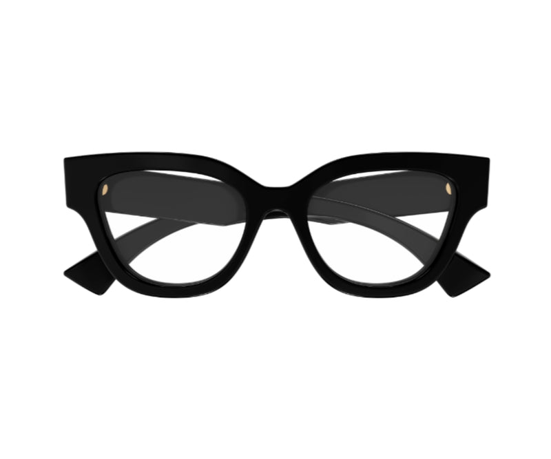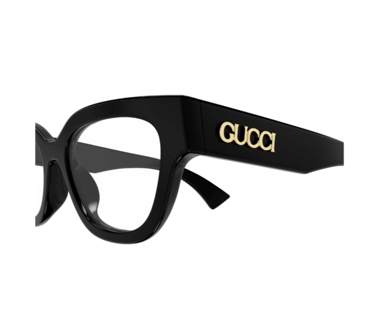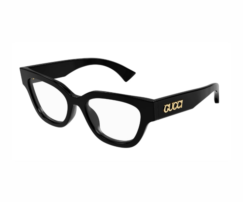 The GUCCI 1837O 001 optical frame is a timeless expression of elegance and sophistication. Designed in a bold black cat-eye silhouette, this frame adds a graceful yet confident touch to any look. Crafted from high-quality acetate, it offers a luxurious feel with lightweight comfort, making it ideal for daily wear. The clear lenses enhance its classic appeal, allowing for prescription customization while maintaining a refined aesthetic. With clean lines and subtle Gucci branding on the temples, this frame embodies the perfect blend of fashion and function. Whether for professional settings or everyday style, the 1837O 001 is a chic and enduring choice for those who appreciate understated luxury with a modern feminine edge.