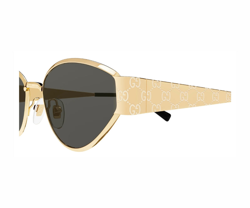 Step out in style with the GUCCI 1853S 001 sunglasses, crafted for those who appreciate a sleek, modern look. Featuring a lightweight gold metal frame and a flattering oval shape, these sunglasses offer a trendy and elegant appeal. The solid grey lenses provide essential UV protection, making them a smart and stylish choice for everyday wear. Perfect for adding a touch of sophistication to any outfit, the GUCCI 1853S 001 is designed for comfort and durability without compromising on fashion. Whether you're heading out for a casual day in the city or dressing up for an outdoor event, these sunglasses are your go-to accessory for a refined and confident look.